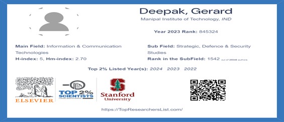 Dr. Gerard Deepak, Associate Professor, Department of Computer Science and Engineering featured in the World’s Top 2% Scientist by Stanford University and Elsevier list based on c-score for the year 2023 featured in the 2024 list.