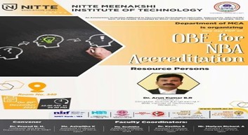 Dr. Arun Kumar B.R. Professor, CSE has extended his support as a resource person for one day workshop titled “OBE and NBA” on 20.12.2022 at Dept. of MCA, NMIT, Bengaluru.