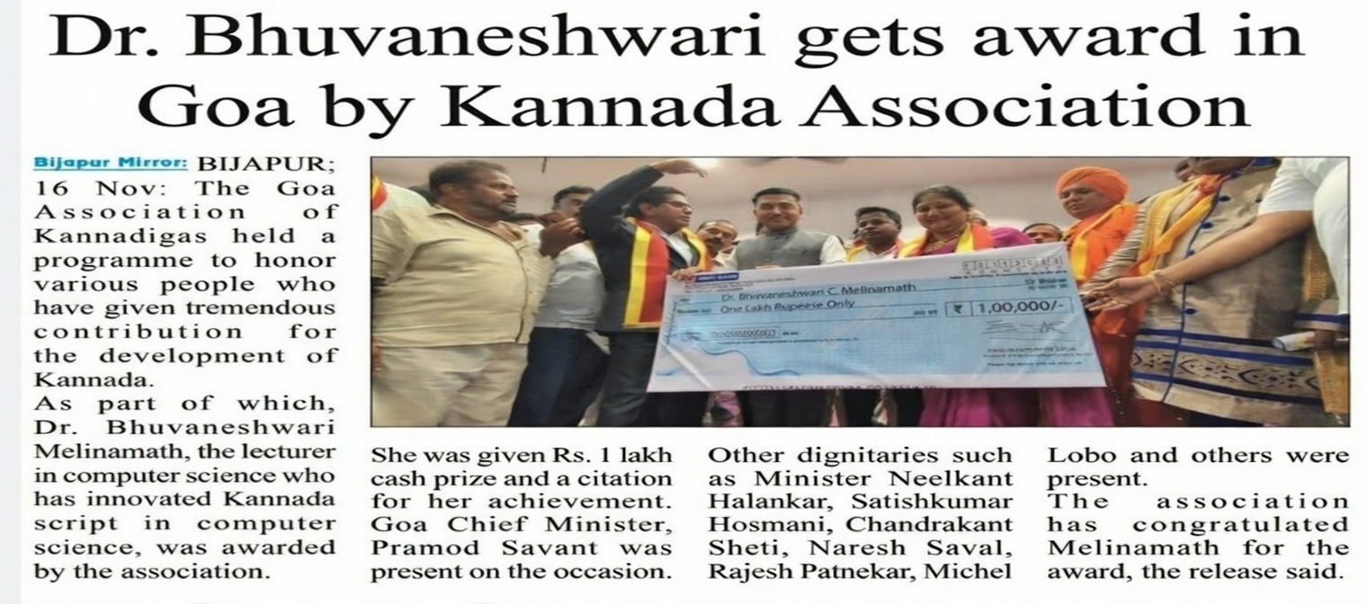 Dr. Bhuvaneshwari C.M, has been honored by Goa Chief Minister Shri Pramod Sawanth On Sunday 13.11.2022.