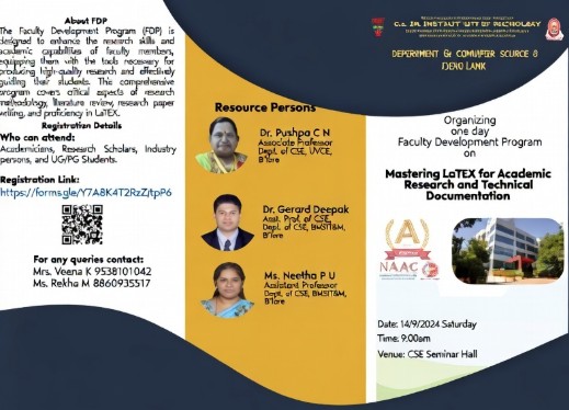 Department of CSE organized an expert talk on the topic on “Mastering Latex: To write Professional Reports & Papers for 5th sem and M.Tech students on 17th and 20th of December 2024.