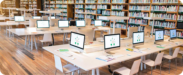 Videos and Web Courses can be viewed in this digital library with an exclusive server having 32 multimedia systems..